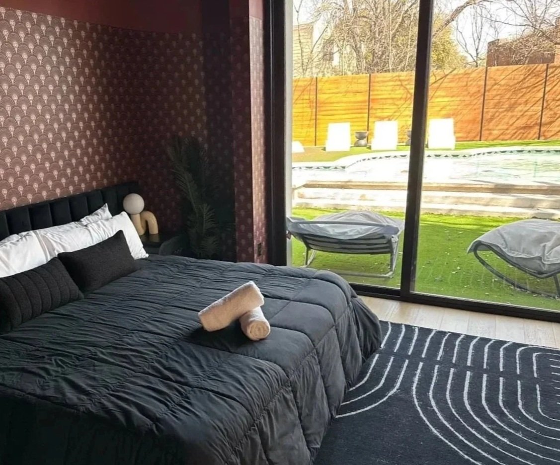 Guests reported a lack of privacy in the primary bedroom, which features sliding glass doors that open directly to the backyard pool area.